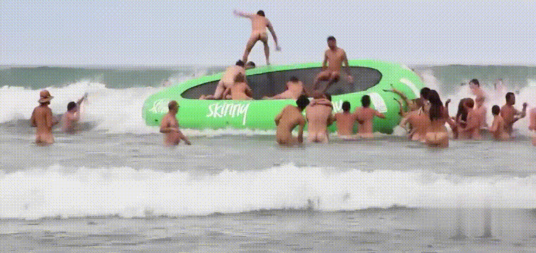 精彩动态图 - 澳大利亚悉尼邦迪海滩最大规模集体裸泳纪录挑战 2730人全裸下海